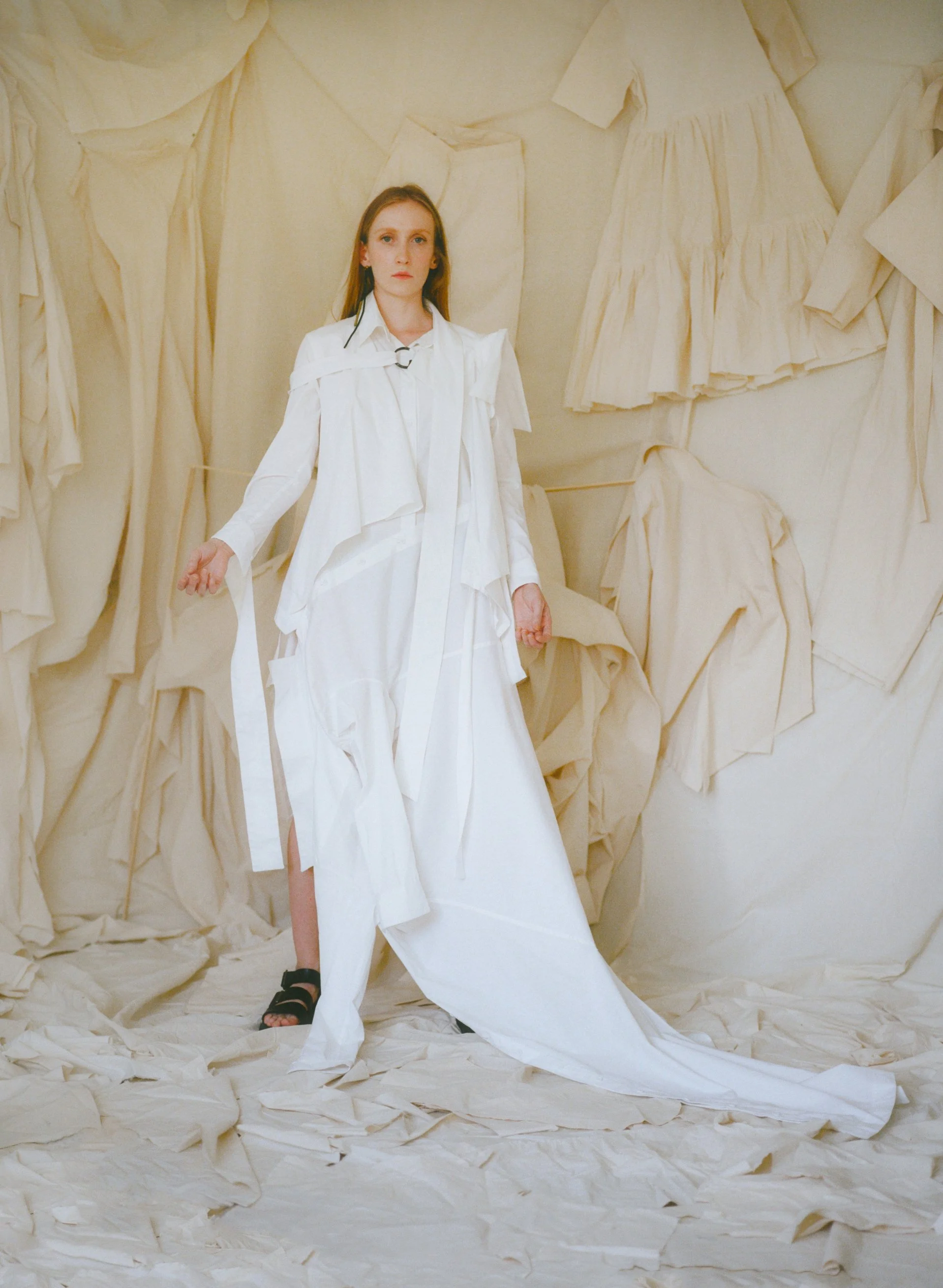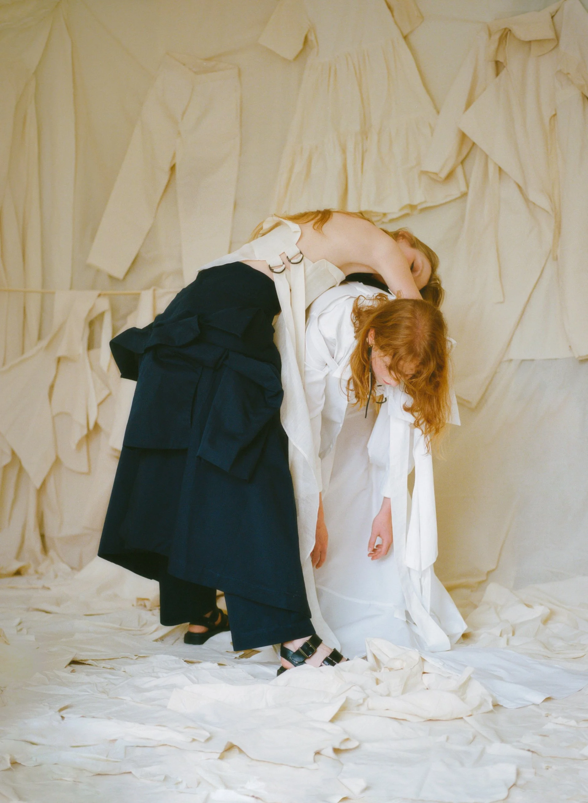 Re-thinking the way our everyday garments are designed and constructed, this collection comprises a range of garments which can be taken apart and worn in a variety of ways. Through the lookbook of the collection I wanted to portray how much waste goes into producing a collection and created a backdrop with all the calico samples used in this collection.